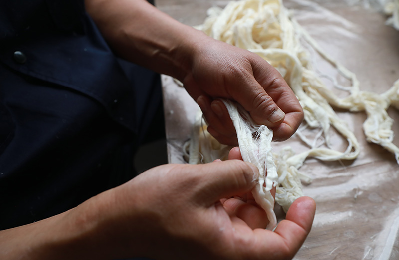 2003年,朱建新在廣泛學習手工紙制作技藝后,在休寧縣南街(玉寧街117號)建手工紙紙坊,開始恢復休寧楮皮紙的生產。2016年,因城市改造拆遷,紙廠移至海陽鎮(zhèn)下汶溪村重建,并注冊成立了黃山市凝霜文化發(fā)展有限公司擬建休寧手工皮紙歷史文化展示館、體驗館、紙藝館、美術館以及藝術家創(chuàng)作中心,以更好的傳承和發(fā)掘休寧手工造紙的工藝技術,使休寧手工造紙技藝與文化發(fā)揚光大,代代相傳。